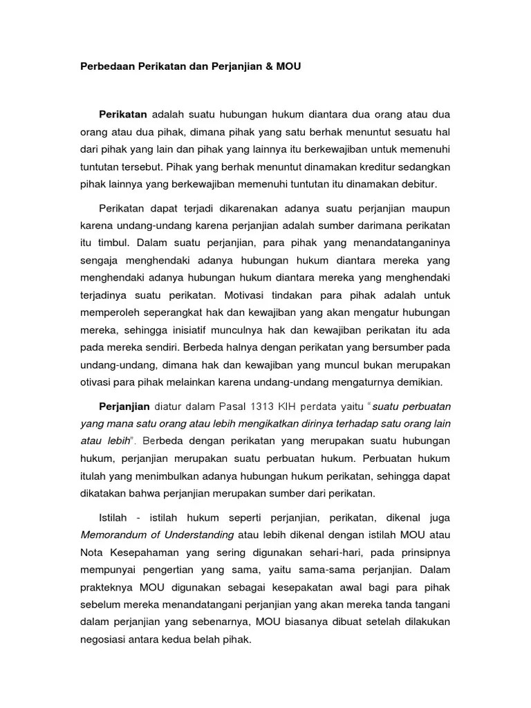 Pengertian ™ nota kesepahaman yang dibuat antara . Sudut hukum | perjanjian merupakan suatu peristiwa di mana salah satu pihak atau . Dalam hal ini, suatu kontrak atau perjanjian bermula dari perbedaan. Memorandum of understanding atau mou adalah nota kesepahaman di antara dua pihak atau lebih. Perbedaan antara memorandum of understanding (mou) dengan kontrak no memorandum of understanding kontrak 1.